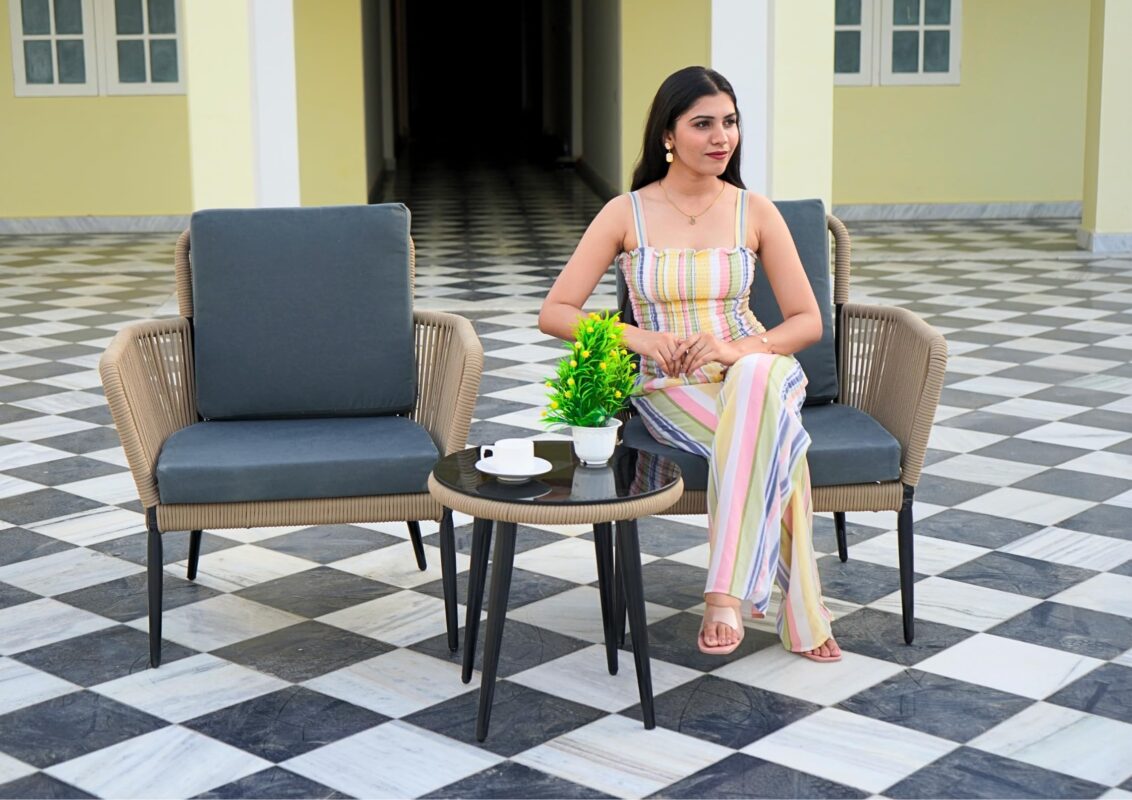 DEVOKO Outdoor All Weather Rope Small Patio Furniture Set with Glass Top Table (Beige & Grey)