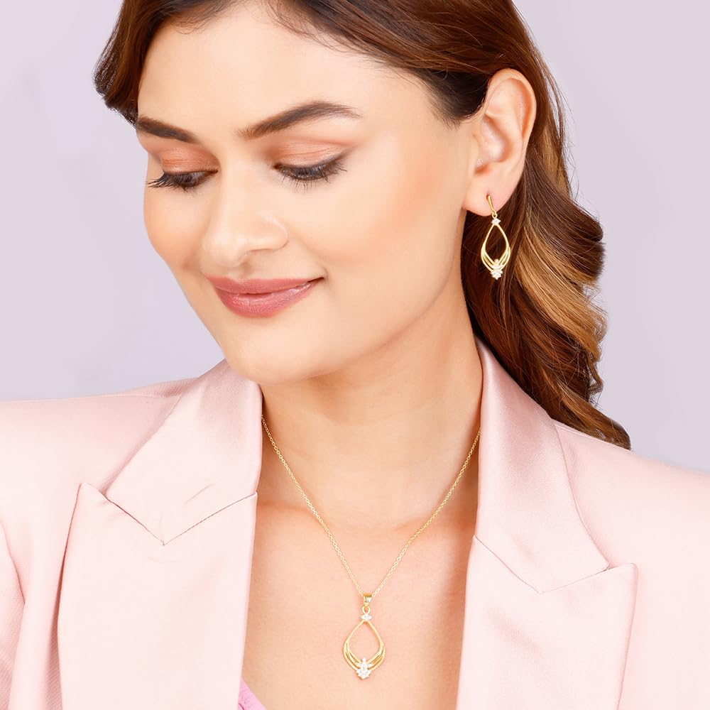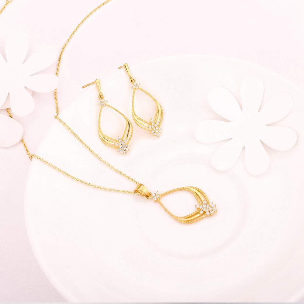 - PRODUCT DETAILS : Made of 925 Silver with Gold Plating,Perfect for sensitive skin,Earring Height: 4 cm, Width: 1.8 cm,Motif Height: 3.6 cm, Motif Width: 1.6 cm,The necklace size is 43 cm and the adjustable chain is 4 cm